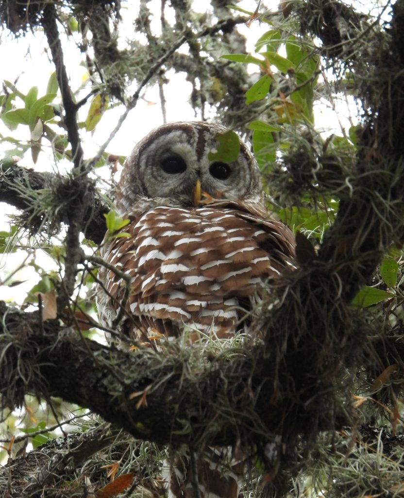 Eventually one of the owls flew toward us landing a mere 15 feet away checking us out. It remained there long enough for Ethan to Facetime his parents and show them the owl. Imagine the memory Ethan will have of sharing the sight and sounds of a Barred Owl with his parents while they sat in a restaurant in Lubbock.