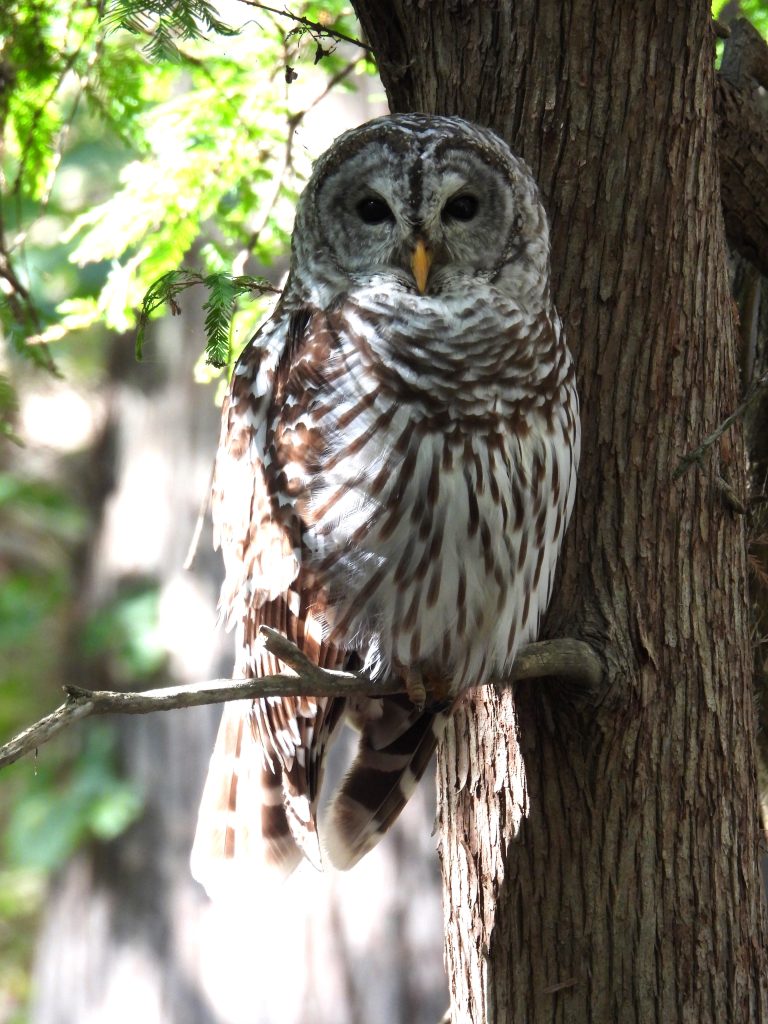 Fast forward to another college degree, two children and a couple of nature center jobs later, talking to Barred Owls began bearing fruit. “Who-cooks-for-you, who-cooks-for-you-alllll” I would call out over and over when suddenly, I don’t recall if it was in Missouri or Nebraska, they began calling back! The first time was as thrilling as the last, which occurred recently at the nature center.